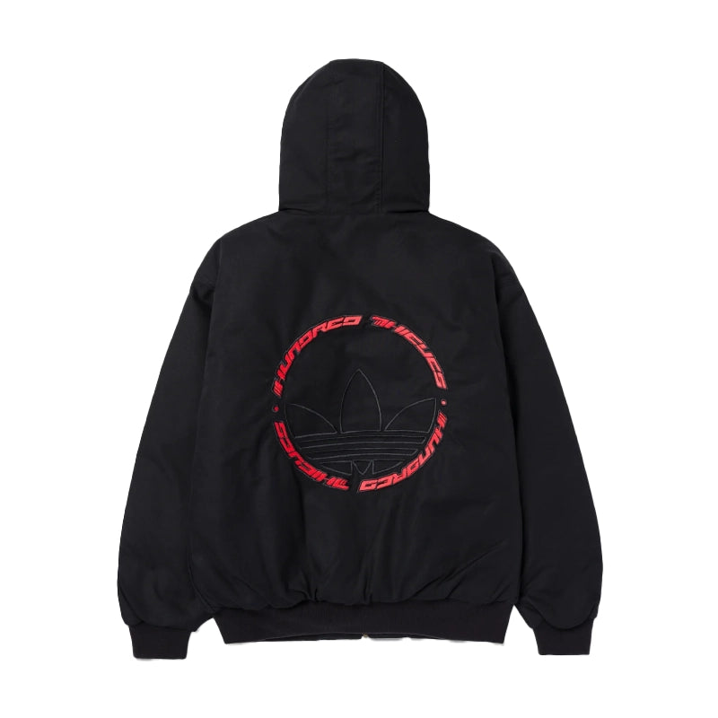 Step into comfort and streetwear style with the Adidas Originals 100 Thieves Black Hooded Jacket. Crafted from premium cotton fabric with a soft inner lining, this jacket delivers warmth without sacrificing breathability. The full zipper closure and hooded collar provide a versatile, sporty look perfect for layering. Its sleek black design embodies the bold collaboration between Adidas Originals and 100 Thieves, making it a must-have for fans of modern street fashion.