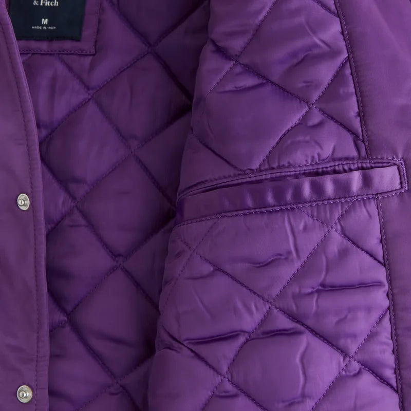 Show your team pride in style with the Minnesota Vikings Abercrombie Satin Varsity Bomber Jacket. Crafted from premium satin, this recreated piece blends sporty charm with everyday comfort. The smooth satin finish gives it a sleek look, while the rib-knitted collar and cuffs ensure a classic varsity vibe. Designed in a bold purple shade inspired by the Vikings, this bomber jacket features a secure button-style closure that adds a traditional touch. Perfect for game days, casual outings, or layering up with your streetwear, this jacket is a must-have for fans who want to stand out while representing their team.