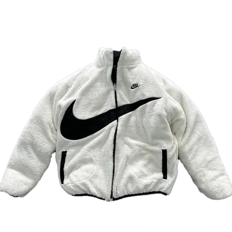 Designed with a stand-up collar, rib-knitted cuffs, and a smooth zipper closure, this puffer jacket locks in warmth and keeps the cold out. Its sleek design makes it a must-have for both athletic wear and casual outfits, offering functionality without compromising on style. Whether you’re hitting the streets or heading outdoors, this Nike reversible jacket ensures you stay cozy, protected, and effortlessly on-trend.